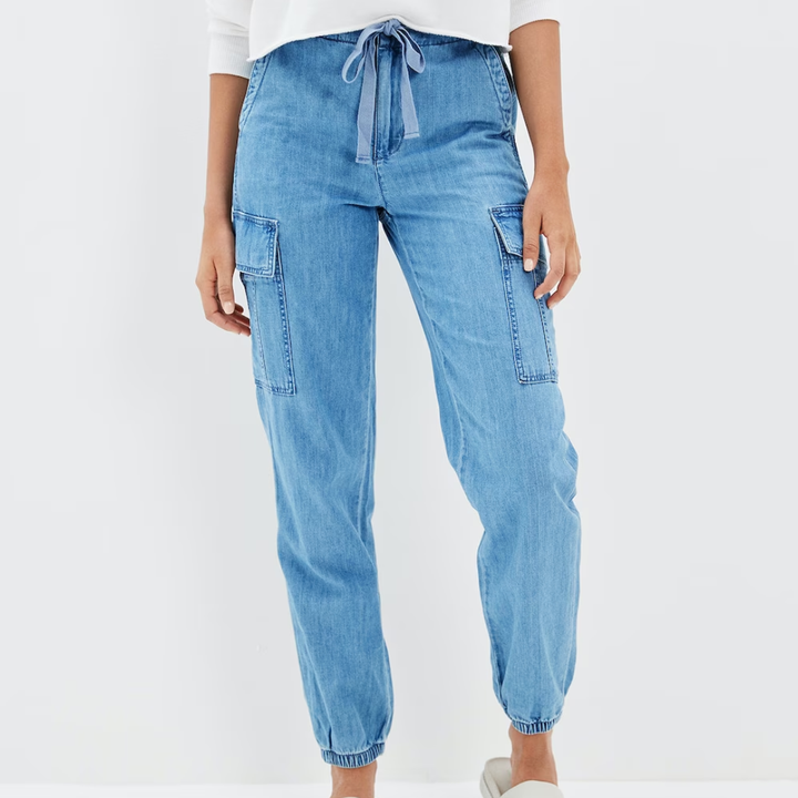The American Eagle Women Blue Baggy Cargo Jogger combines relaxed comfort with practical style. Featuring a roomy fit and multiple cargo pockets, it offers ample storage while maintaining a contemporary look. The durable fabric ensures long-lasting wear, making it ideal for casual outings or laid-back days. Designed to provide freedom of movement and versatility, these joggers effortlessly blend function and fashion.